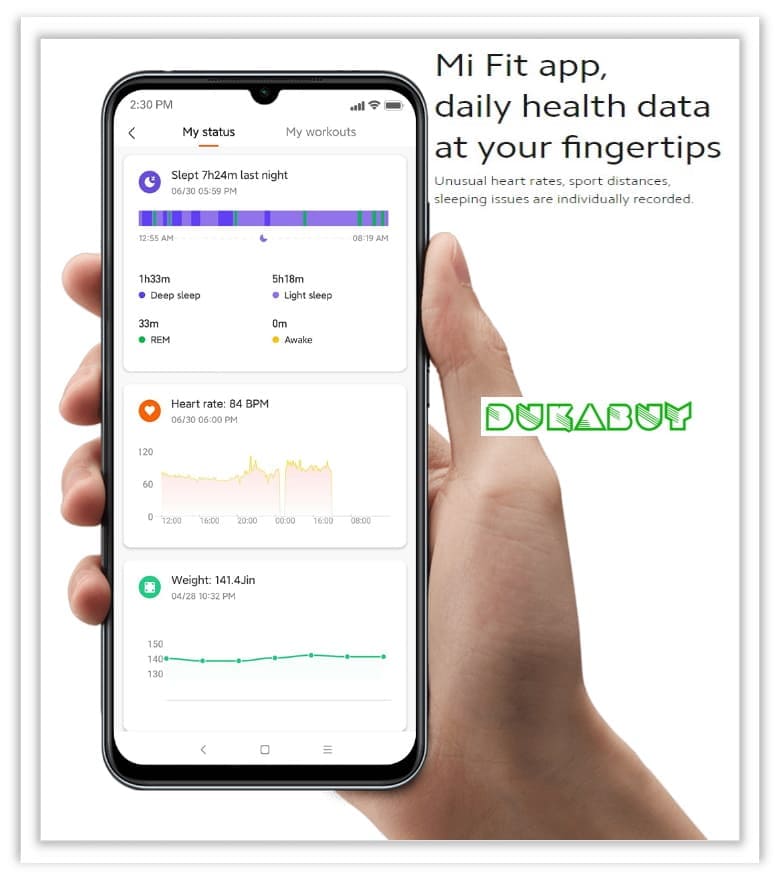 Heart rate monitor: Infrared detection of heart rate (NFC version supports only), heart rate throughout the day, manual heart rate,